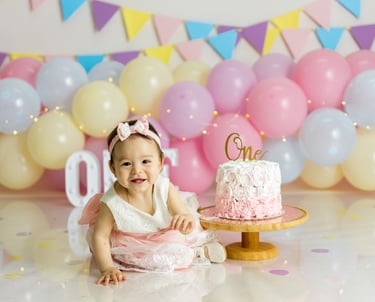 Una sesión breve y encantadora, perfecta para capturar la ternura de su primer cumpleaños.